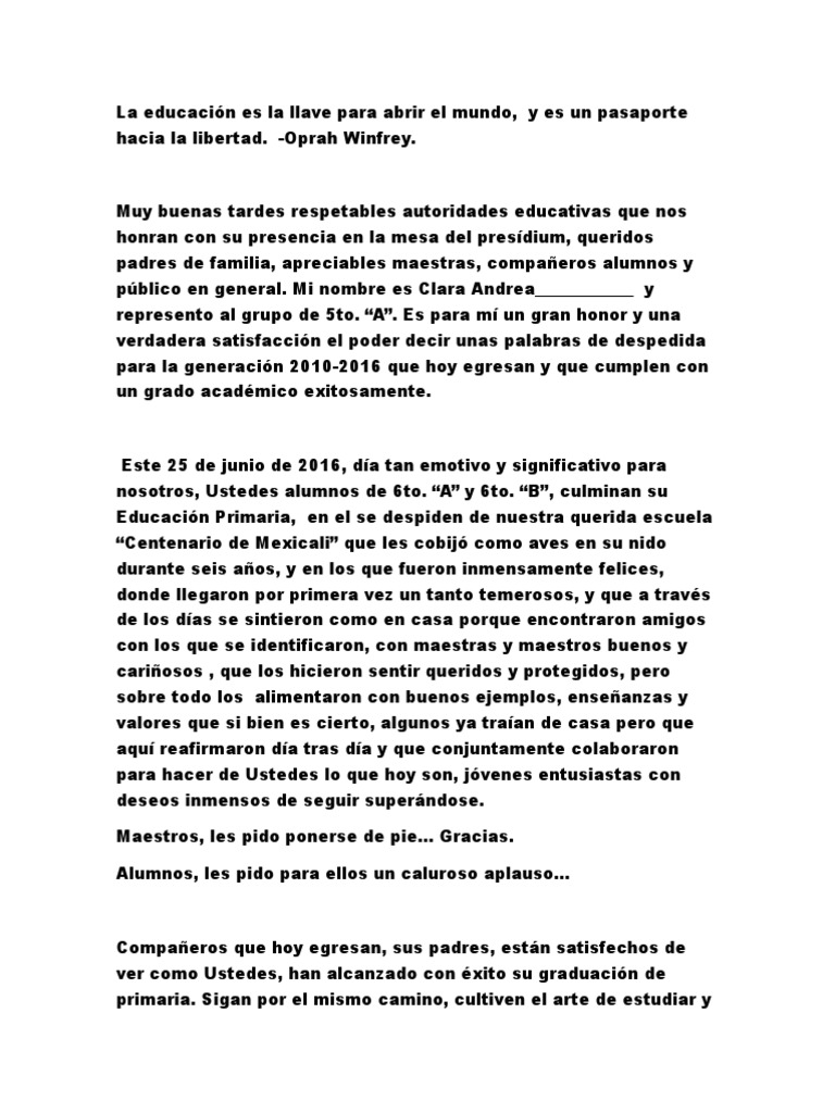 Palabras De Despedida De Alumna De Quinto Grado Atos 2016 via es.scribd.com